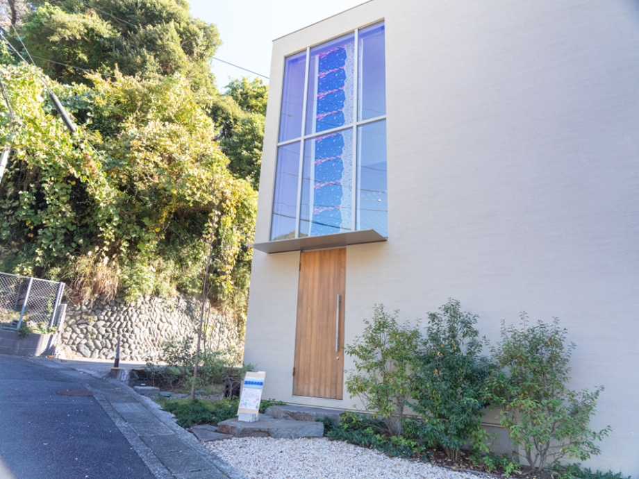 「テキスタイルのためのギャラリーがある」と聞いて鎌倉駅から徒歩15分。辿り着いたのは、大きな縦長のガラス窓が目印の素敵な一軒家です。