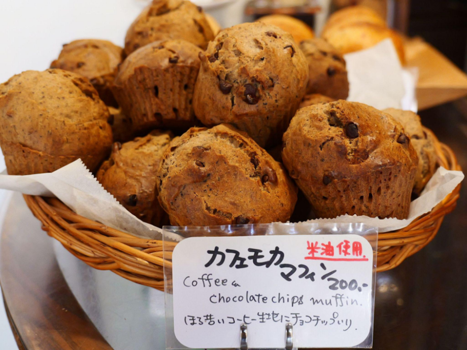 コーヒー生地にチョコチップを加え、米油を使用することで軽い食感に。ちょうど焼き上がりの時間だったため、焼きたての香りが、より食欲をそそります。