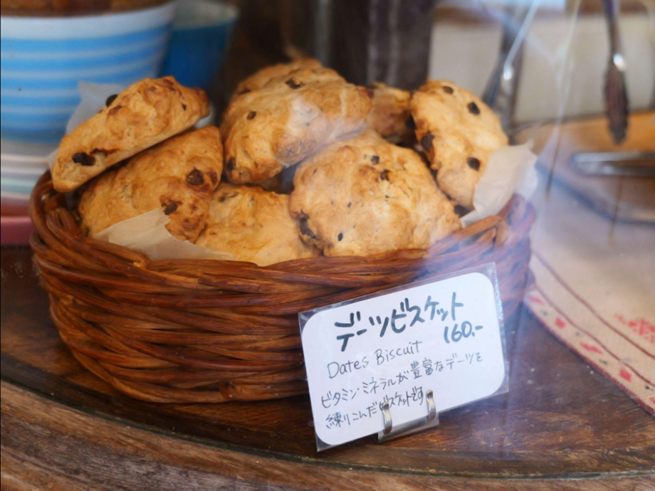 「デーツビスケット」(160円)は、コクのある味わいが特徴。サワークリームを生クリームに置き換えて作った「サワークリームビスケット」から考えたもの。