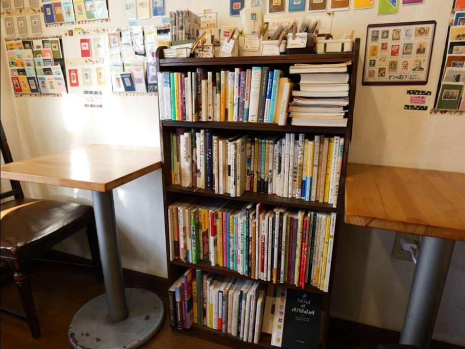 併設されているカフェスペースには所狭しと、清水さんが集めた本が並びます。購入することはできませんが、その場で読むのはOK。まるで図書室のようです。