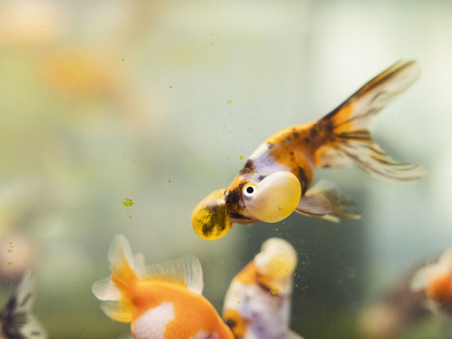 「元気な金魚は、人を見ると近づいてくるんですよ。ほら、餌をもらえると思って口をパクパクさせるでしょう」