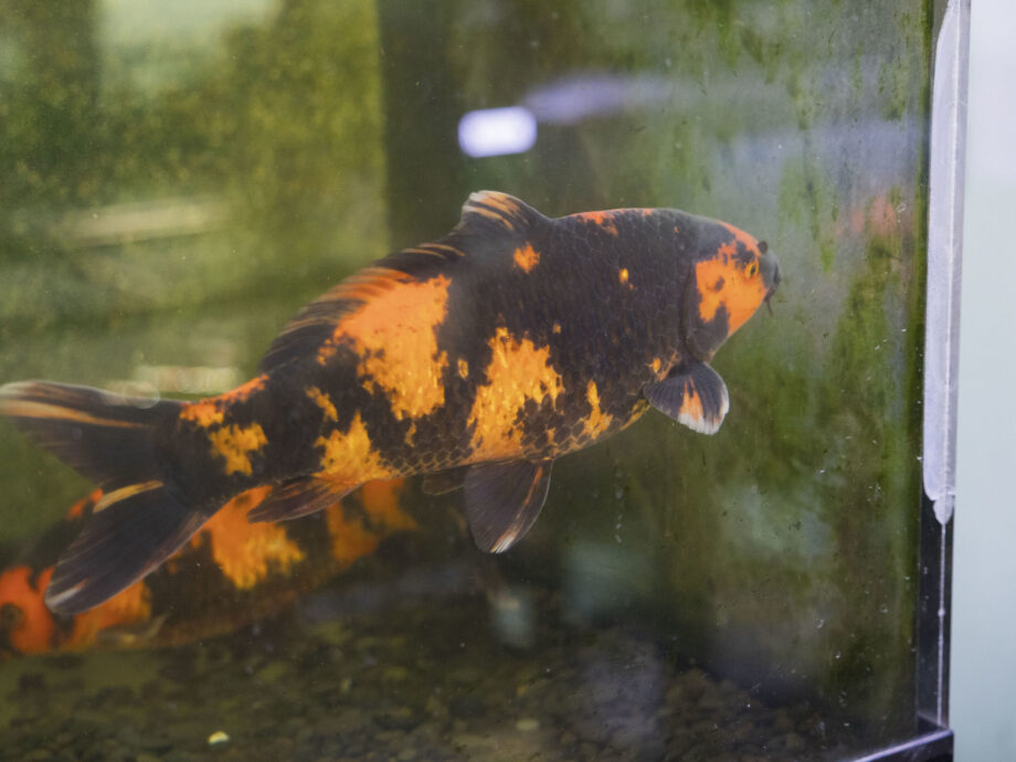 店内には、大きな水槽を悠々と泳ぐ、彩り豊かな金魚たち。驚いたことに、錦鯉と金魚が一緒に泳ぐ水槽もありました。青柳さんの丁寧な管理のもと、どの魚も活発で、美しいハリツヤです。