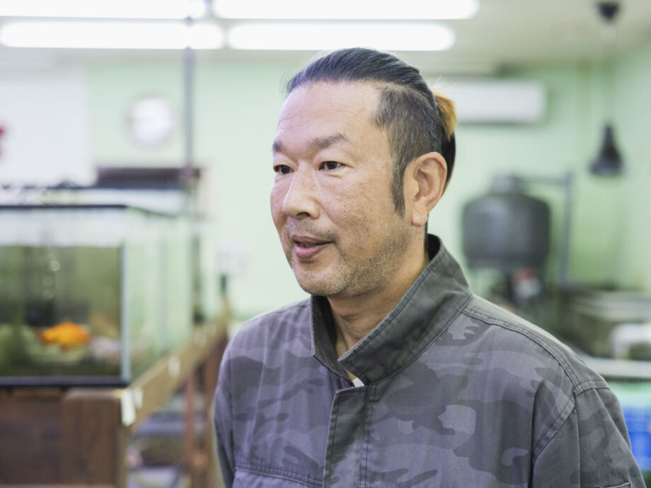 そう教えてくれたのは、オーナーの青柳裕一さん。かつて国産車ディーラーの店長として働いていましたが、顧客(後に裕一さんの師匠となる方)から譲り受けた20cm級の金魚や錦鯉の稚魚をきっかけに、観賞魚の世界へ。