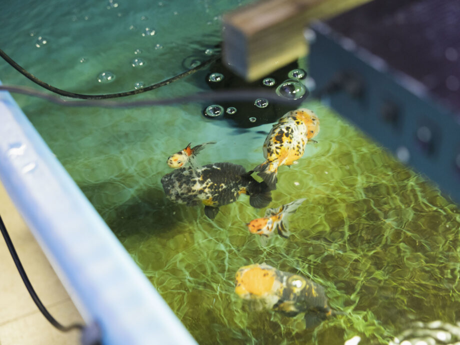 青柳さんが水槽の前を歩くと、金魚たちが甘えるようにふわりと寄っていきます。この金魚たちが誰かに永く愛されることを祈って、今日も青柳さんは丁寧にお世話を続けています。