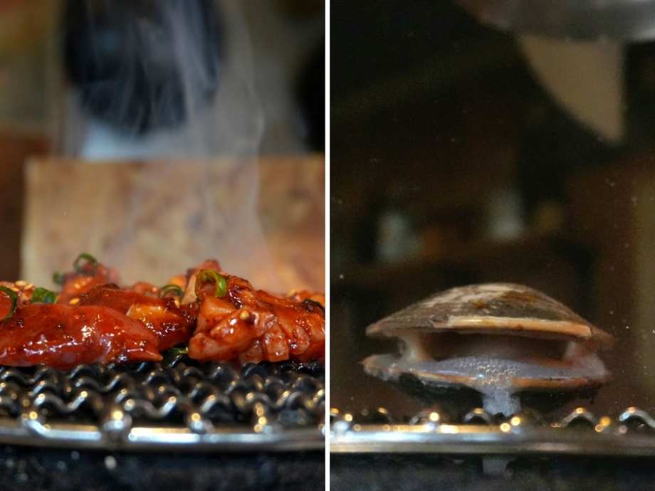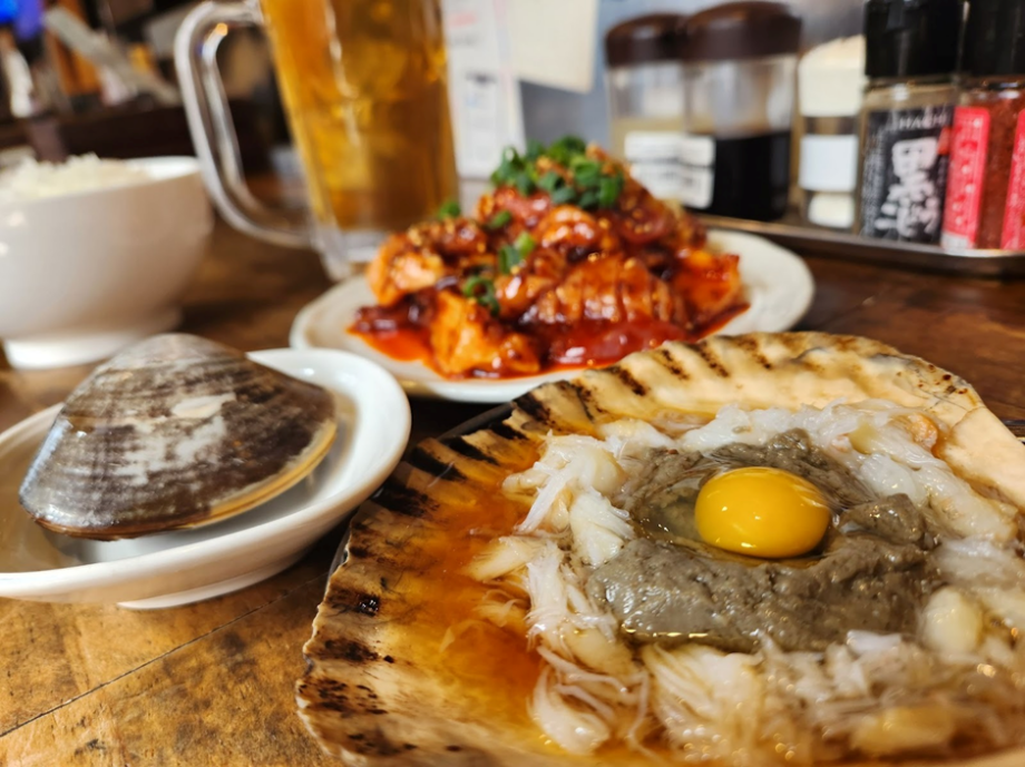 注文したホルモンや魚介を焼きたてで食べられるのはもちろん、ジュージューと焼ける音を聞きながらできあがるのを待つのも楽しい時間です。