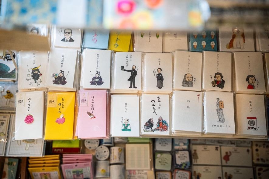 小さなメモ用紙やポチ袋、海外のオシャレなデザインのペンにレターセット……所狭しとぎっしり並んだアイテムを眺めていると、幼少期にお小遣いを握りしめて文房具屋さんで買い物を楽しんだ、あの頃のワクワクとした気持ちがよみがえってきます。