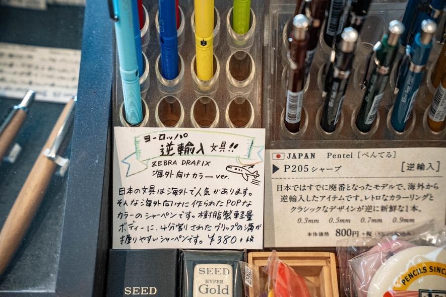 よそでは置いてないような珍しいデザインや種類が豊富で、手書きのポップをじっくり読んでみたり、手に取って書き心地や紙の質感を試したり。思わず時間を忘れてアイテム探しに没頭してしまいます。