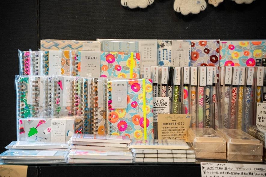 場所柄、外国人観光客の来店も多く、インバウンド客に特に人気なのが友禅紙を使ったアイテム。「一枚一枚手作業で染色される友禅紙を使用した、古典柄とネオンカラーの組み合わせが目を引く筆箱やノートを買われていく方が多いですね」と柴田さん。