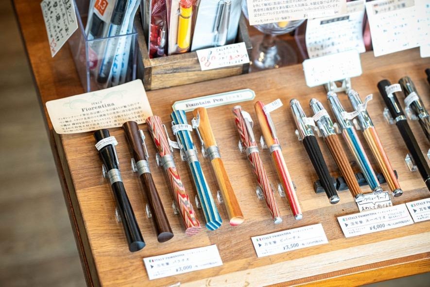 お店の看板にも描かれている万年筆を筆頭に、店内には国内外の筆記具や紙雑貨など素敵なアイテムが空間いっぱいに広がります。