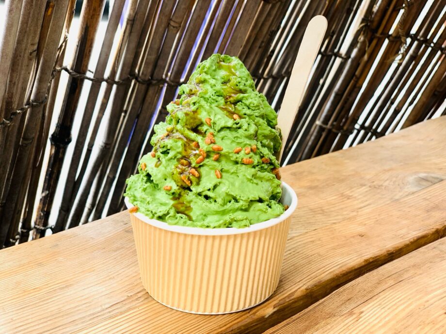 長峰製茶は、静岡県、東京、神奈川県に8店舗の工場直売店があります。むせるほど抹茶がかけられたソフトはメディアでも紹介され、SNSでも話題を呼んでいます。そして、製茶屋だからこそ実現する抹茶がふんだんに使用されているメニュー「エスプーマ泡抹茶ソフト」は横浜金沢限定です。抹茶を使用した甘味への追及心を極めたお茶屋の至極の一品だと感じました。