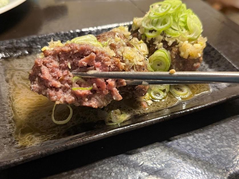 箸を入れると、一般的なハンバーグとは明らかに違う、しっかりとした弾力。