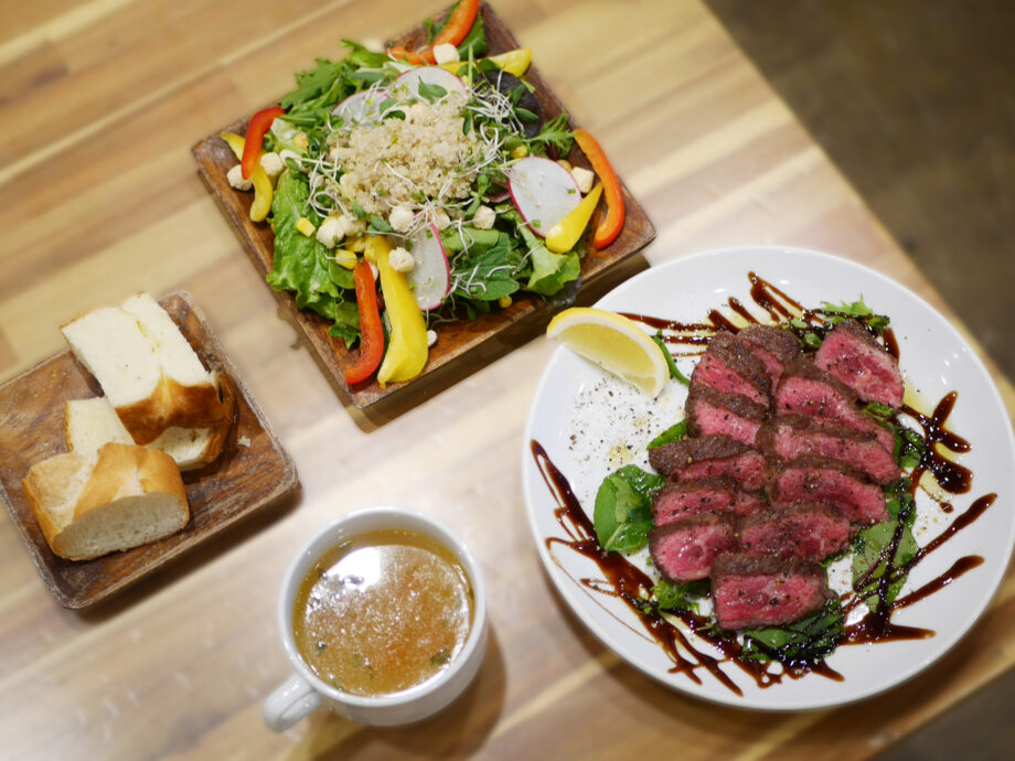 手間ひまを惜しまず仕上げられるタリアータは、シンプルだからこそ技が光るひと皿。香ばしさ、肉汁、ロゼ色の美しさ、そしてサラダバーの彩り——そのすべてが揃ったランチは、思わず誰かに勧めたくなる満足感があります。