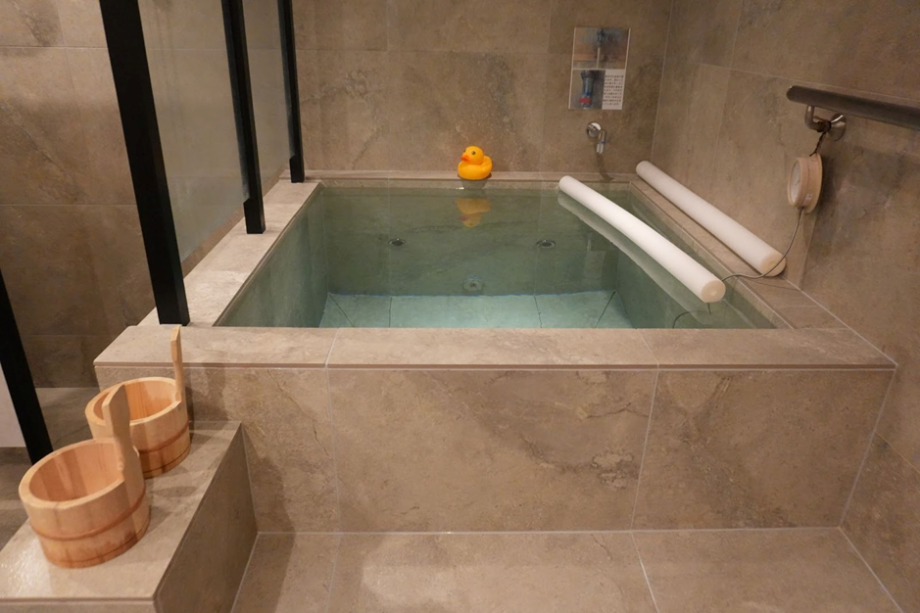 水風呂にはプールでよく見かける浮き具が用意されていて、使った時の浮遊感がたまりません。深さが120cmもあるので、身長160cmの私でもプカプカと浮くことができてリラックス。
