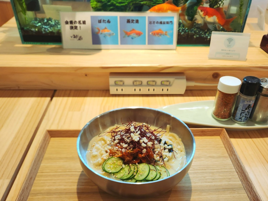 サウナは時間制で料金がかかりますが、こちらのカフェは時間無制限。のんびりとくつろぐもよし、お仕事をするもよし。 日本庭園が見られるカウンター席、金魚の水槽を囲んだロの字のカウンター席、向かいあった2人掛けのミニテーブル席…と自分が落ち着く席を選べるのも嬉しいポイント。