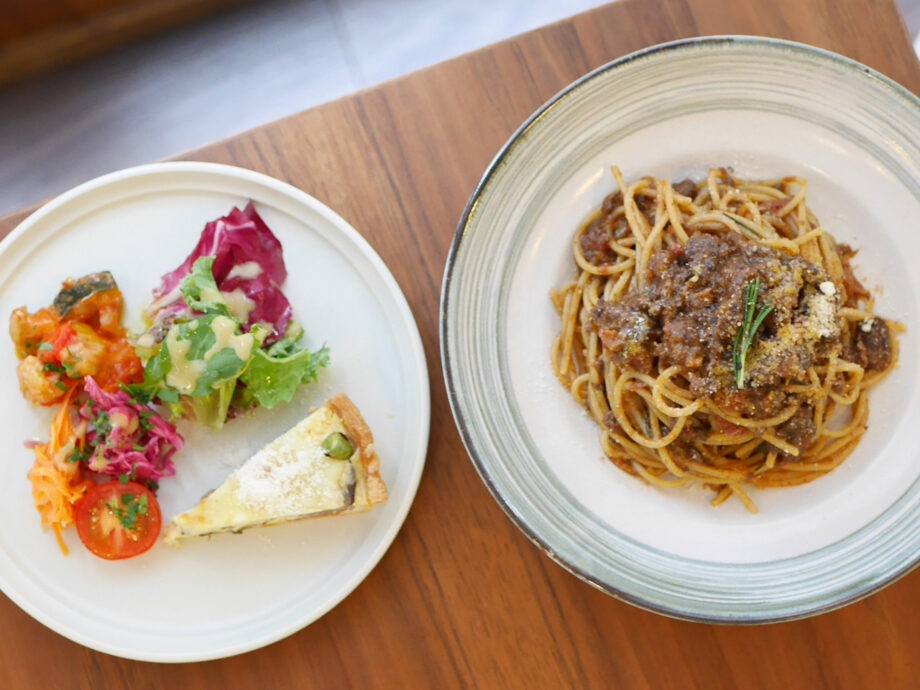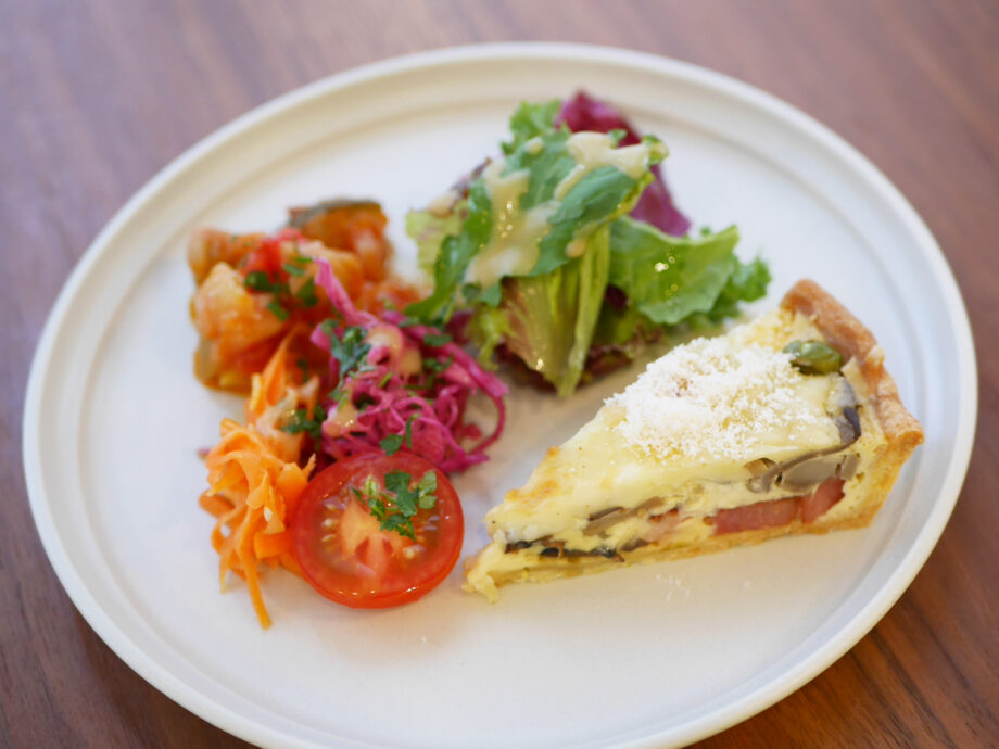 パスタなどに付けられる「小前菜の盛り合わせ(+660円税込)」は女性を中心に人気。日替わりで旬野菜3種とキッシュが並び、この日はラタトゥイユ、サラダ、舞茸と枝豆のキッシュ。