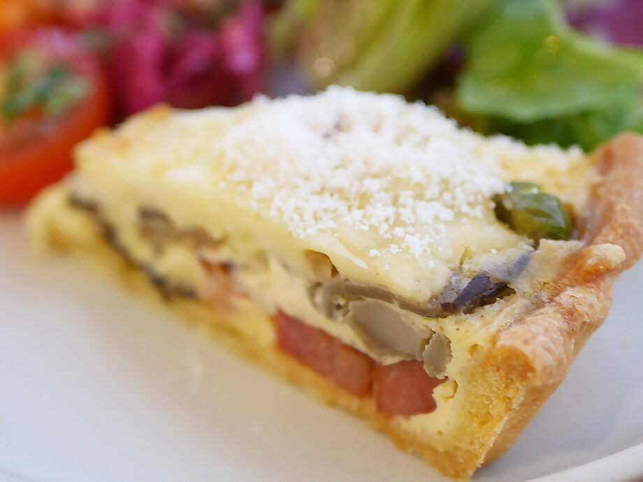 ラタトゥイユは野菜の甘みと酸味が絶妙、サラダはシェリー酒由来のジュリビネガーとディジョンマスタードのドレッシングが爽やか。キッシュは玉ねぎの甘みやベーコンの旨み、チーズと卵の濃厚さがサクサクのタルト生地と調和し、まるでホテルの一皿のようです。