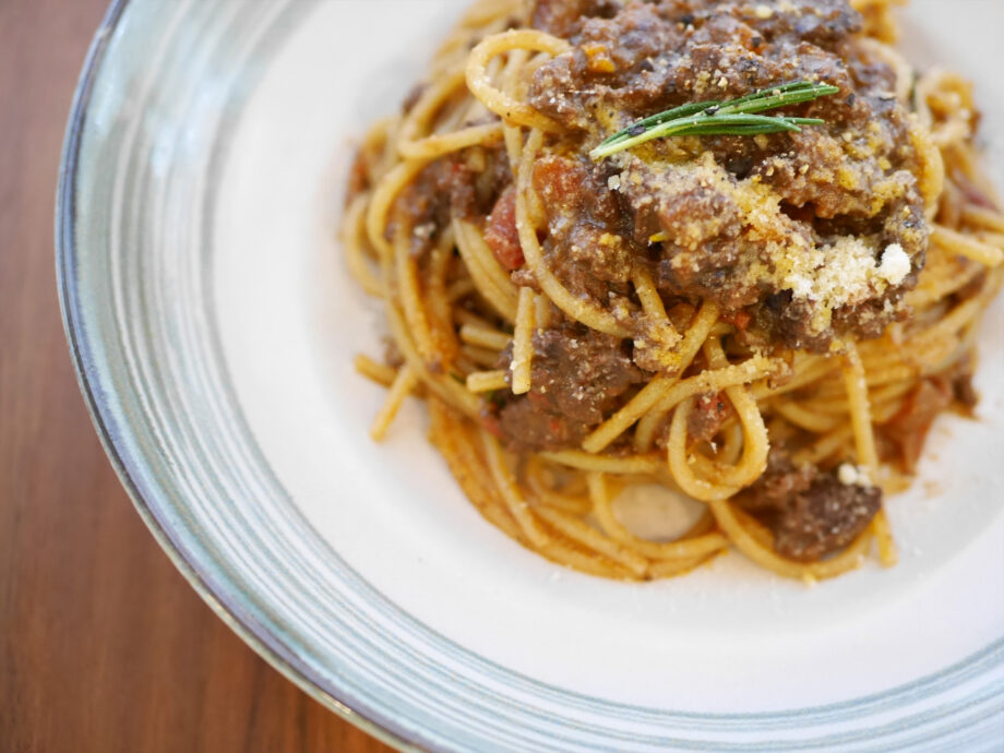 自家製コンソメを作る際に「エゾ鹿」を使用し、高級牛肉のような肉質であることを知っていた田坂さんは、ボロネーゼに合うと直感。北イタリア・ボローニャ地方の伝統的な煮込み料理の手法にこだわり、作り上げました。