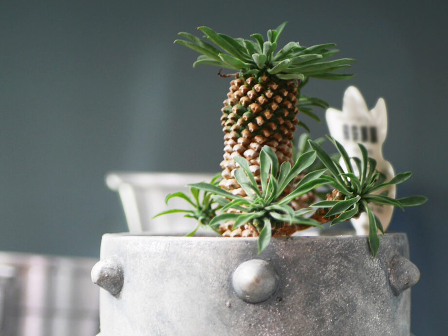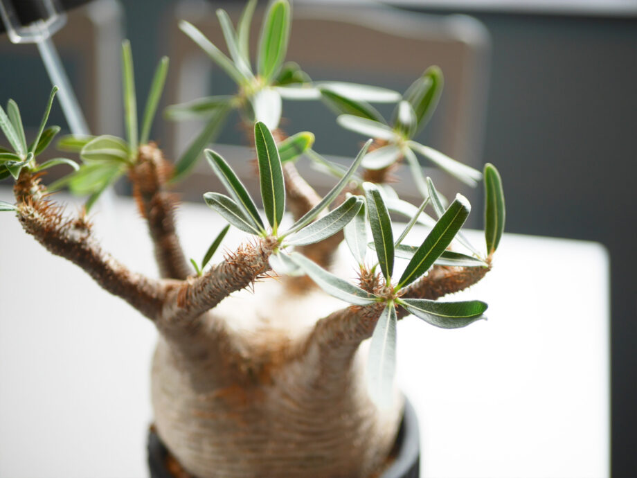中でも希少性が高く人気なのが、マダガスカル原産の「パキポディウム・グラキリス」。ずんぐりと膨らんだ幹の塊根と対照的な細い葉が特徴。コレクターやインテリアグリーンを求める人々に人気だそう。見る人を惹きつけます。