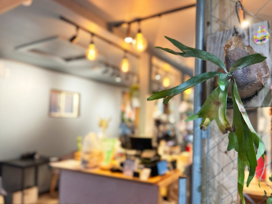 二人は大の植物好きで、生産者や輸入元を訪ねて専門知識を学び、一から積み重ねてきました。飲食業界経験とバリスタ資格を持つ亜紀さんは、植物販売とカフェを切り盛りし、来店者に寄り添った提案を心がけています。