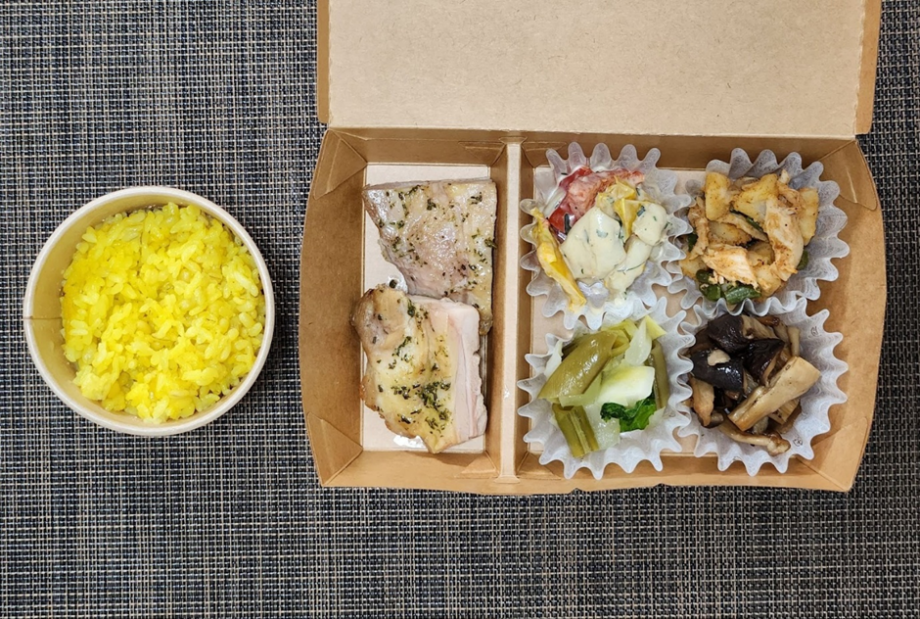 デリBOXに合わせるご飯は、サフランライス。もち麦入りのサフランライスは、食物繊維が豊富なだけでなく、冷えても硬くなりにくいという特徴が。