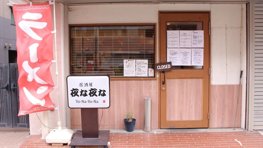 黄金町駅から大岡川を渡って約5分。ランチタイムに通りを歩いていると、思わず足を止めたくなる「ラーメン」の赤いのぼりがあります。今回は、ランチタイムも営業している居酒屋「夜な夜な」を紹介します。