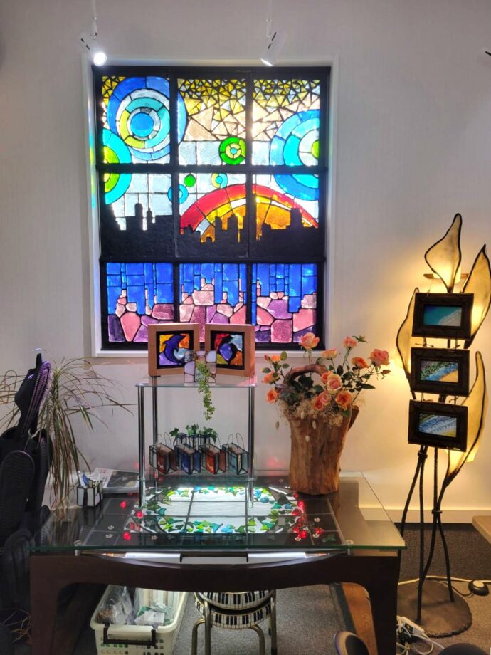 ワークショップの講師を務める星野さんは、国内外で活躍されているアーティスト。ステンドグラス作品などで多数受賞されており、館内では一部作品を見ることができます。