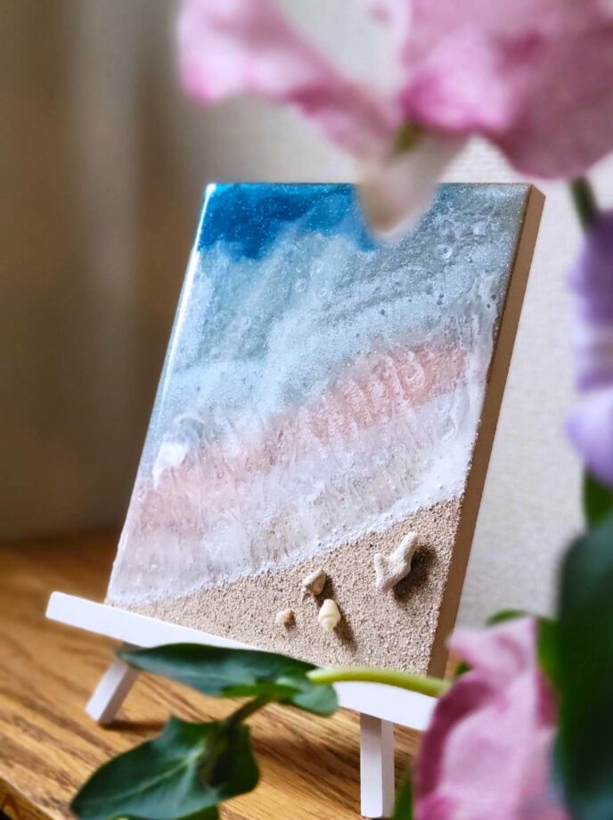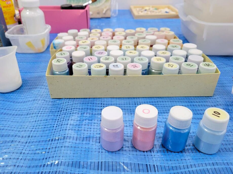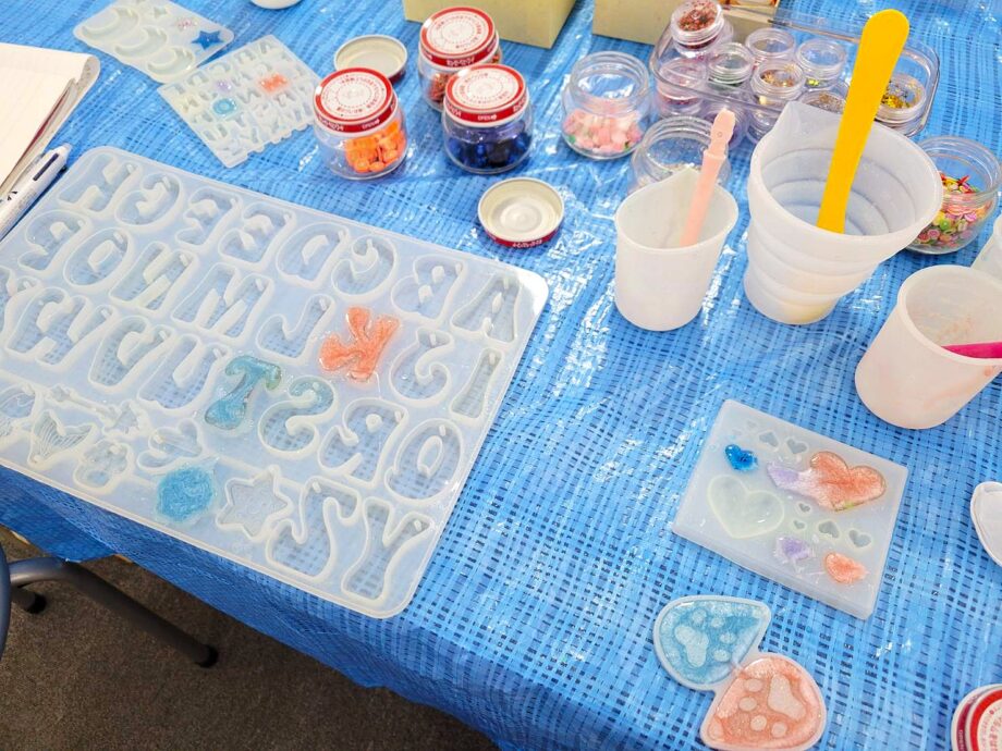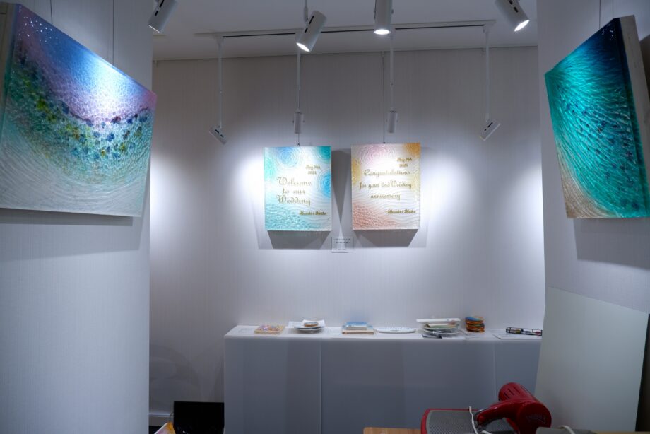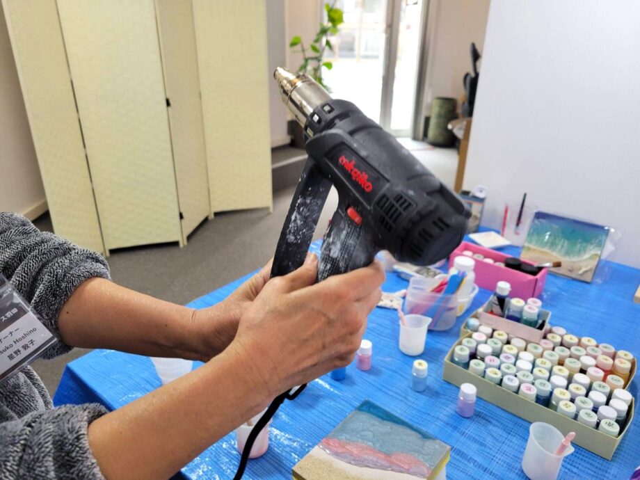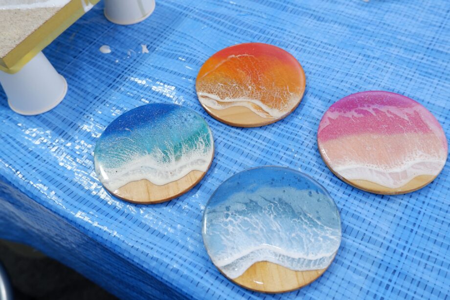 ワークショップでは、子どもが遊べるパズルから、ガラスアート・レジンの波パネルなどの難易度が高いものまで、多彩なメニューが用意されています。今回は、本物の海に近いデザインを描けると聞いて、人気が高い「波パネル(エポキシレジン)」に初挑戦しました。
