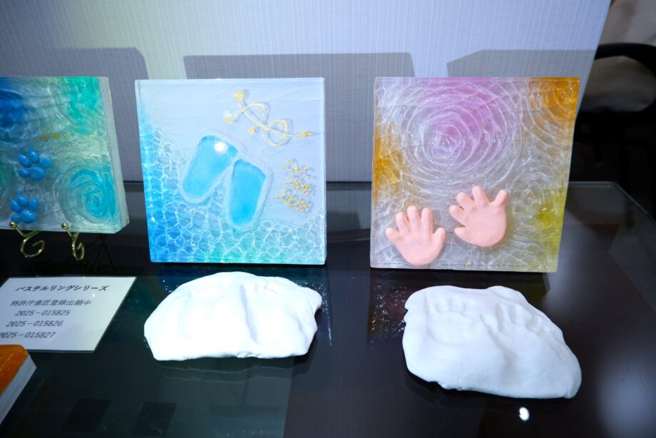 ワークショップ以外に、記念パネルのオーダーも可能です。指定する型取り用の粘土で、自宅で型を取って発送するだけで、作品がお手元に届きます。つい触れたくなる、ふっくらとした質感の手形・足形は、出産祝いやペットの記念などにおすすめのアイテムです。
