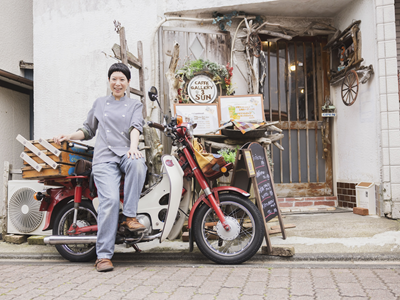 「通勤用の乗り物を探していて、三崎のライダーの方々に『荷物を運ぶならカブじゃない?』と勧められました。免許も持っていなかったし、バイクにも疎かったのですが、今はもうバイカーのイベントに参加するほどどっぷりハマってます(笑)中でも印象深かったのは、日の出と共に太平洋側から走り出して日の入りまでに石川県・千里浜まで走る『サンライズ・サンセット・ツーリング・ラリー』ですね」