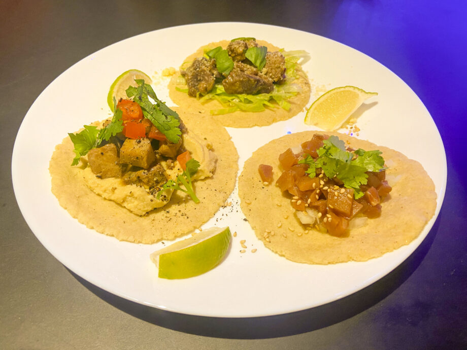 大量のマグロが水揚げされる“マグロの町”として名高い三崎。同店ではマグロの漬け、尾の身、ホホ肉が使われた「マグロ3種タコス」(1,600円)がおすすめです。