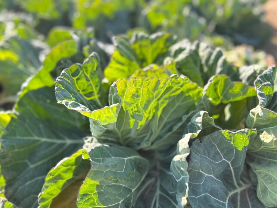 三浦半島の丘に広がるキャベツ畑。整然と並ぶキャベツの姿に、思わず圧倒されてしまいます。この広大な畑には、なんと約1万個ものキャベツが育っています。キャベツの小さな苗が、燦燦と降り注ぐ光を浴びて、まるで大地の恵みを感じながら、元気に息をしているかのよう。