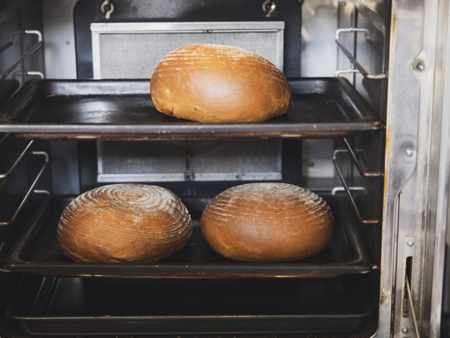 厨房にオーブンの音が響き、北川さんが駆け寄ります。中を覗くと、大きなパンがふっくらと焼きあがっていました。