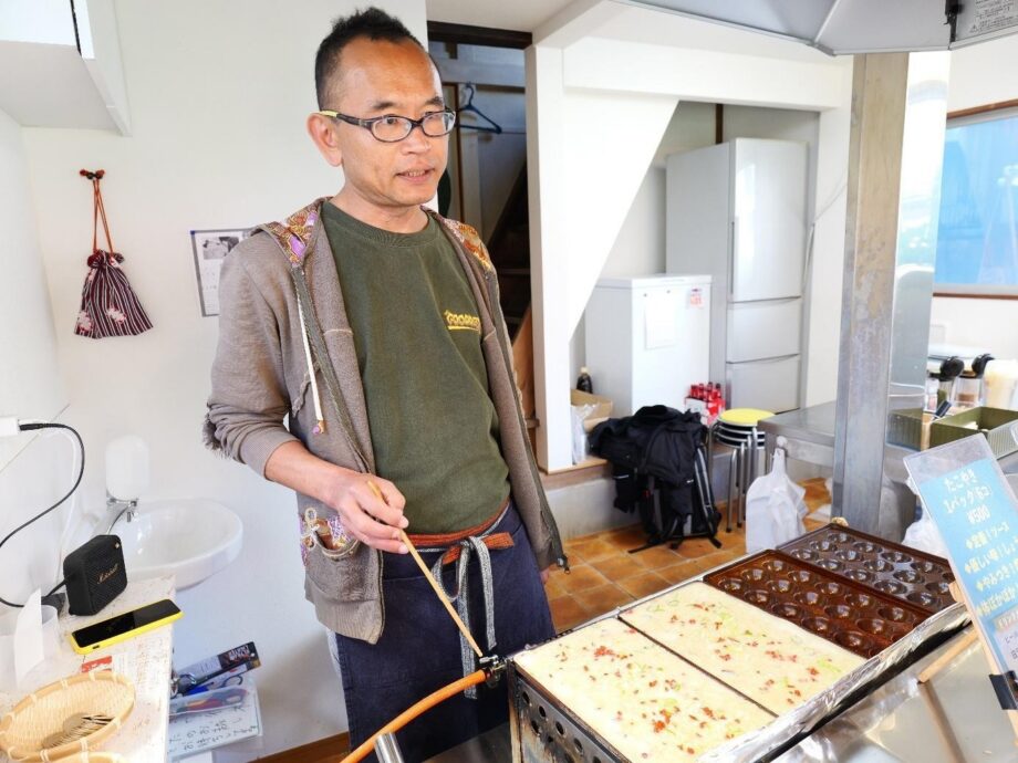 「三崎港周辺にはたこ焼き屋さんがなかったので、たこ焼き店にしようと。関西の粉屋さんの研修に参加し、2日間で1600個のたこ焼きを焼き、習得しました」と、たこ焼き店をはじめたきっかけを教えてくれました。