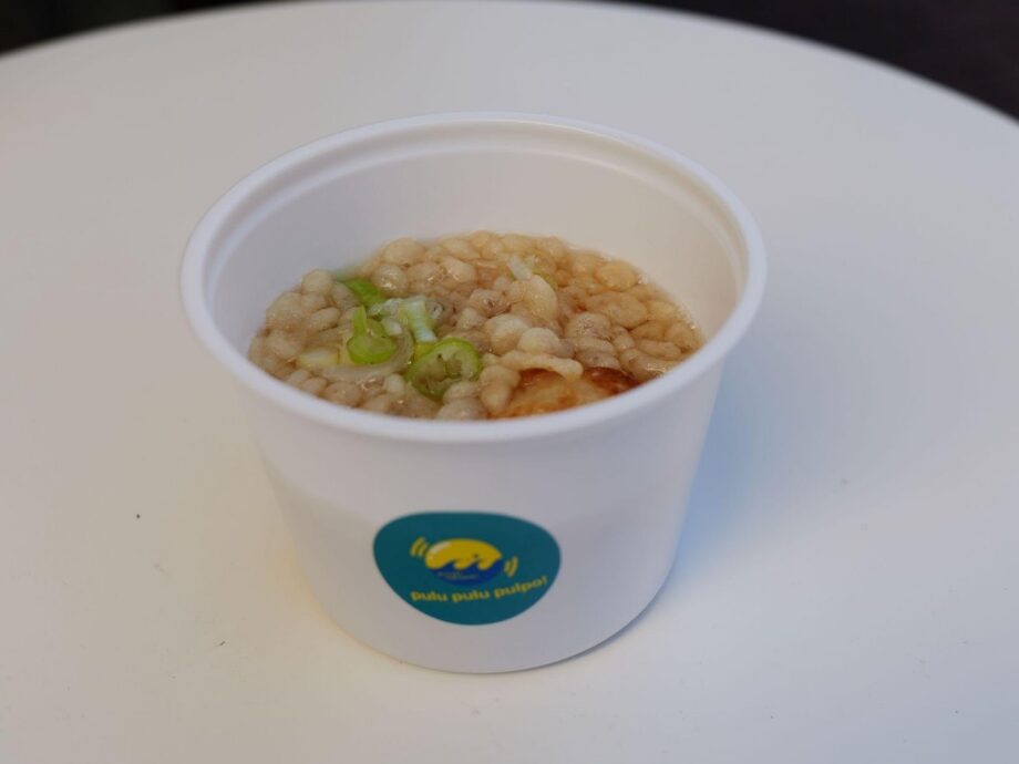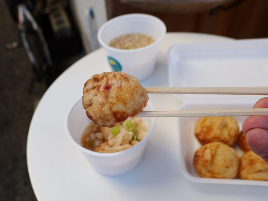 「スープ」はたこ焼きの需要が低くなる夏季に「冷やし」として登場。冬季は温かなスープにたこ焼きを浸して楽しむスタイルです。関西風の出汁が効いた、たぬきうどんを思わせる風味が新しい!