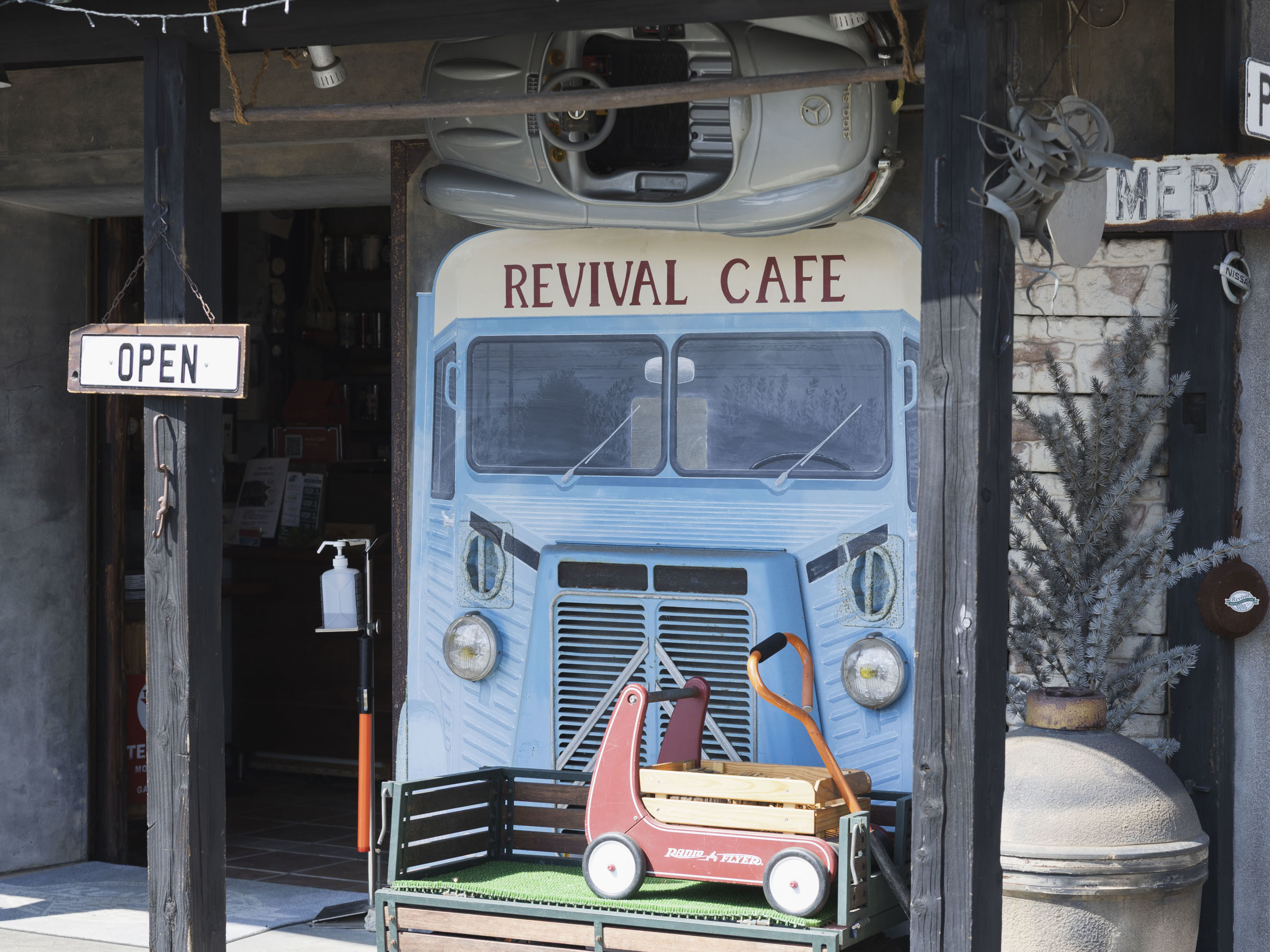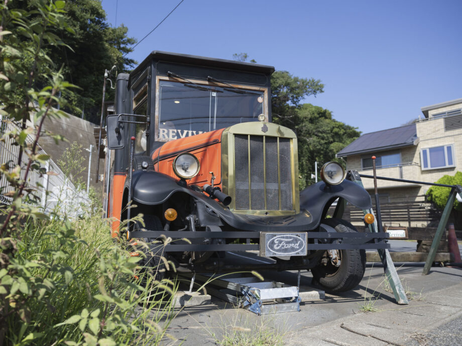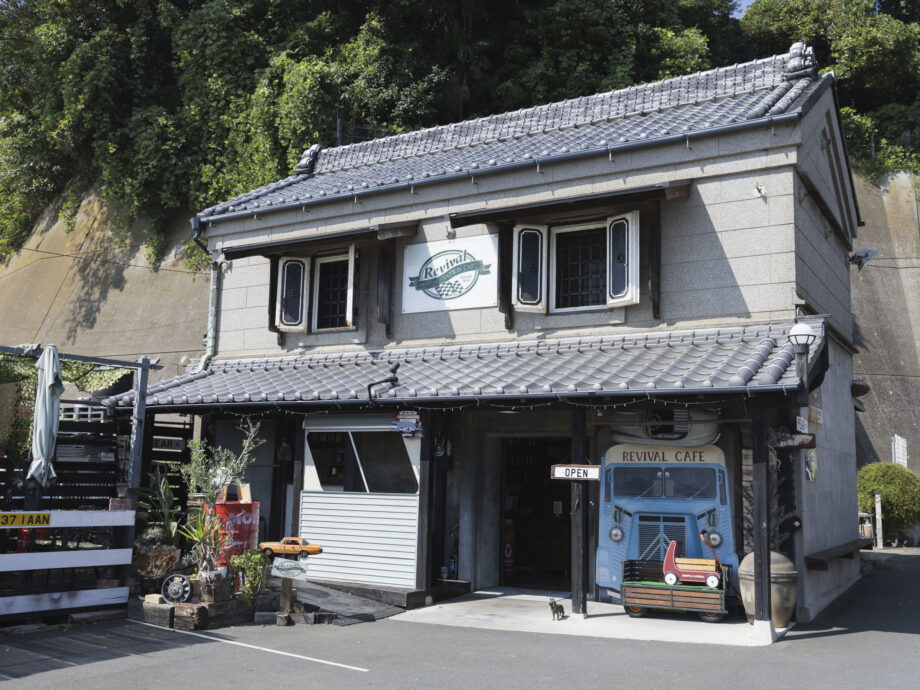 車好きであれば、その光景に思わず足を止めて見入ってしまうことでしょう。三浦海岸を囲む国道134号線沿いに建つ「Revival Cafe」の駐車場には、日々、レジェンダリーな名車が集います。
