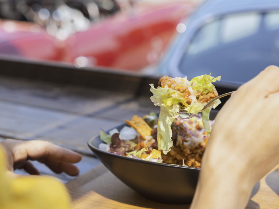 「農作物は天候や気候に左右されやすく、収穫量も変わります。でもタコライスなら、葉物が少ない時期でも、他の野菜を混ぜて彩りよく仕上がりますし、規格外の野菜も美味しく活用できるんです」