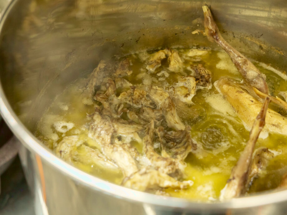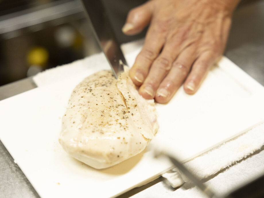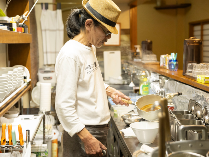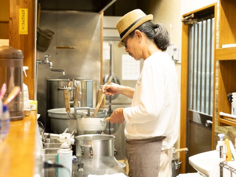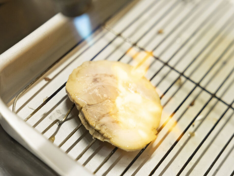 「オープン当初は鴨のガラを入れていましたが、最近は代わりに“老鶏”、要は親鳥を一羽丸ごと入れています。具材につけるチャーシューも一緒に煮込むので、鶏肉と豚肉どちらの脂、旨みが溶け出し、スープにコクと香りが加わります」