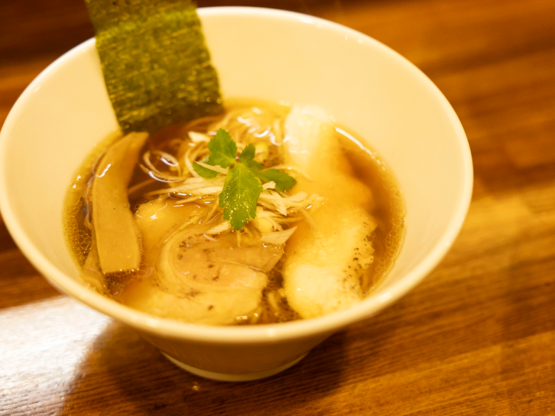 澄んだスープを口に運ぶと、確かにやわらかな味わいながらも、ラーメンらしい塩気よりも旨みが口に広がります。自然の食材が積み重ねられた出汁が描く穏やかな輪郭に、奥深さを感じられます。