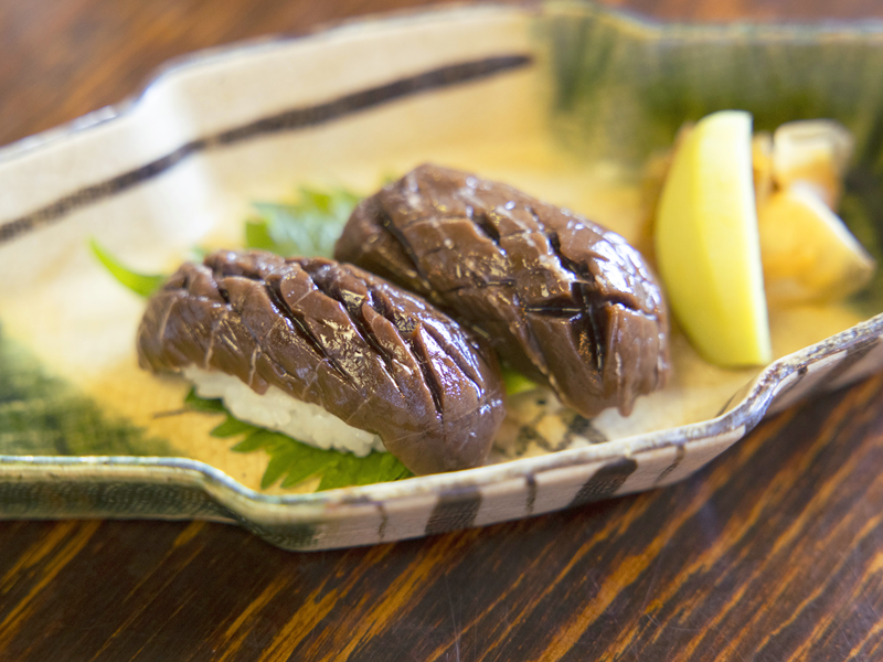 見た目のインパクトは裏腹に、まるでレバ刺しのようなぷりぷりとした食感と濃厚な漬けの味わいに思わずうっとり。血合肉の印象をがらりと変えてくれる一品です。