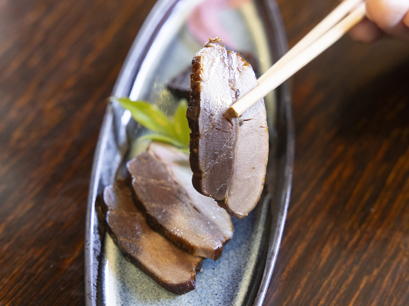 もうひとつ「茜身の燻製」(440円・税込)も、伊豆島さんらしいひと手間を加えています。ふんわりと漂う薫香に、噛みしめたときのしっとり感がたまりません。マグロの種類によっては加熱すると身が硬くなってしまいますが、畜養マグロだと理想的なしっとりとした食感になるようです。