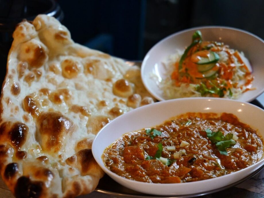しっかりとした辛さのあるマグロカレーは、タンドール窯の炭火で焼いた、甘さを感じるナンによく合います。サラダのドレッシングは、ショウガが効いていて、野菜の旨味を引き出しています。口の中がすっきりとリセットされ、最後までおいしくいただけました。