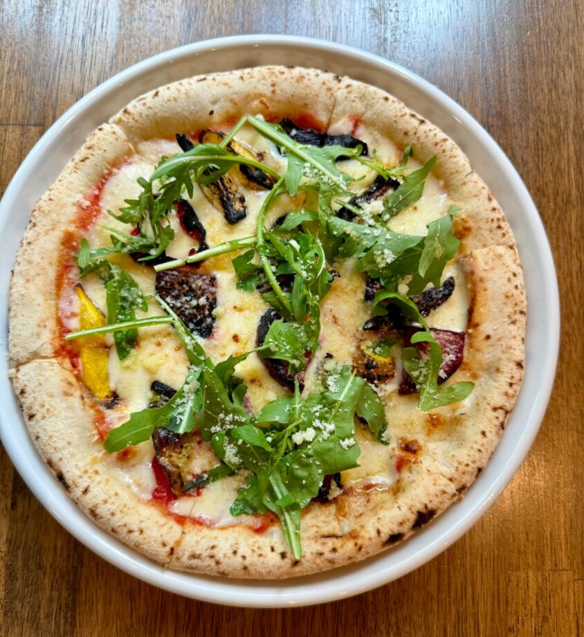 おすすめのピザは「有機野菜のピザ」。農家直送の野菜を使用し、季節を感じられる一品です。