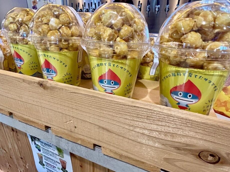 象徴的な取り組みが、ブランド野菜「まぐろいも」です。マグロの骨や皮、ビール造りの麦芽カスを肥料に育て、料理やスイーツとして再び食卓へ。海から大地へ、そして人へと命が巡る仕組みが、ここにあります。