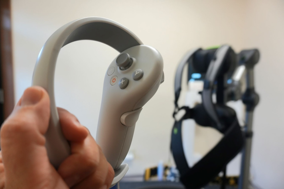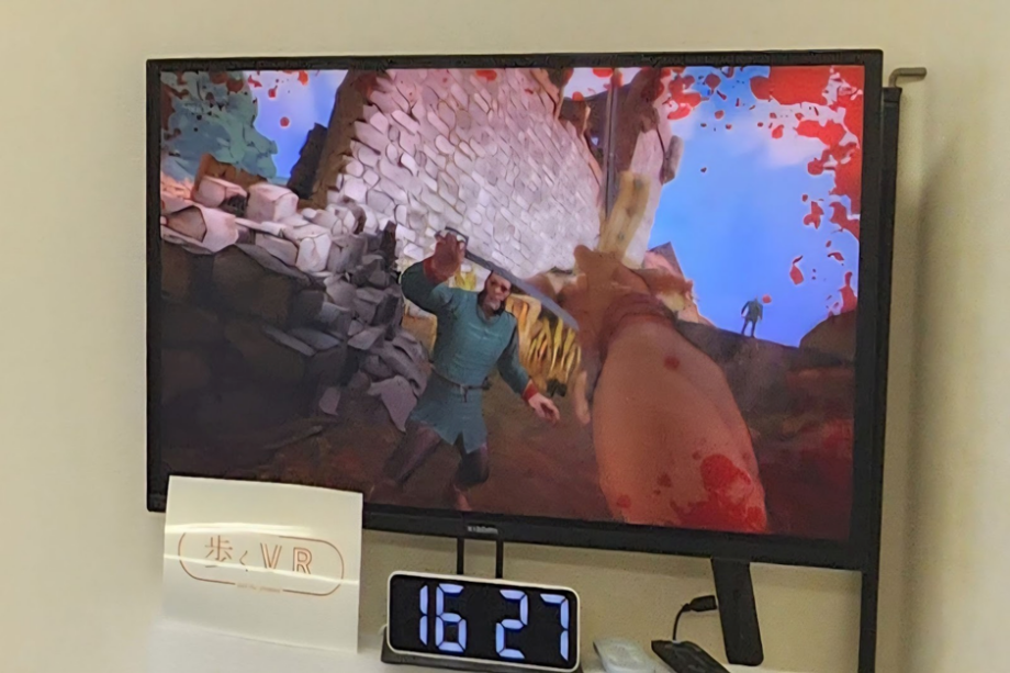 歩き続けていることに加え、はしごに上ったり、剣で戦ったりするので、今までのVRとは比べ物にならないほど運動量の多いVRでした。