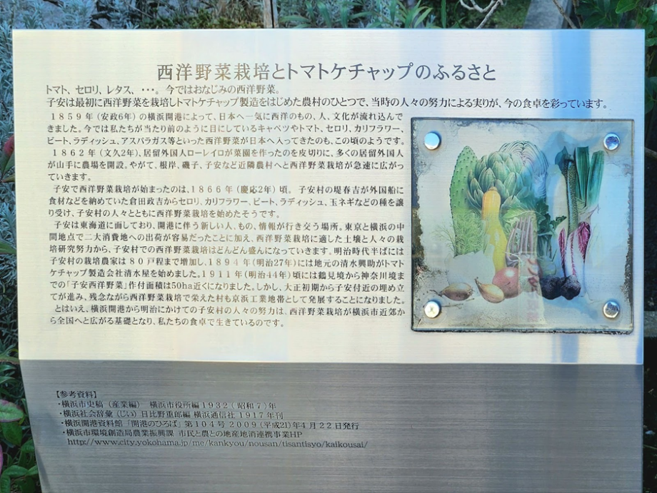 1860年ごろから開港の地・横浜では外国人に向けた西洋野菜の栽培が盛んでした。新子安もその一つ。 野菜を生産する中でどうしても出てきてしまうのが、傷がついたり、形が悪くなったりしたものです。食べられるのに穴を掘って埋めていたトマトをなんとかしたいと思った與助は、廃棄されるトマトを使ってケチャップを作り始めました。