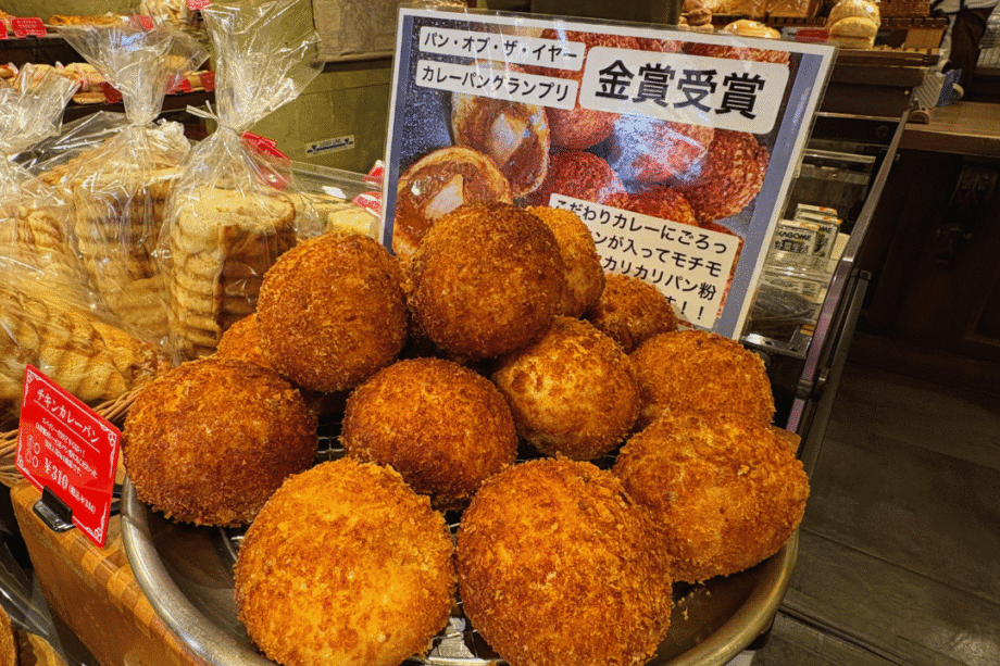 テレビでも紹介された“チキンカレーパン”は、カレーパングランプリで金賞を受賞した逸品ということもあり、パン好きなら一度は訪れたいお店です。まん丸なフォルムが特徴的で、ごろっと入ったチキンが印象的です。
