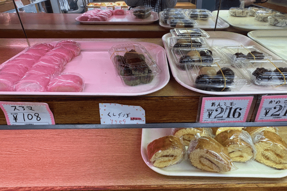 創業当初は和菓子屋だったこともあり、店頭にはパンの他にもロールカステラやシベリアなどの和菓子が並んでいるのが特徴です。