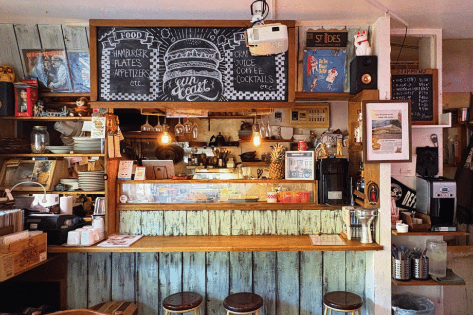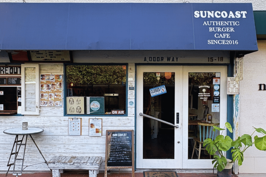 アメリカンテイストの装飾が目を引く「SUNCOAST(以下、サンコーストと記述)」は、2016年にオープンし、まもなく10年を迎えるハンバーガーショップ。