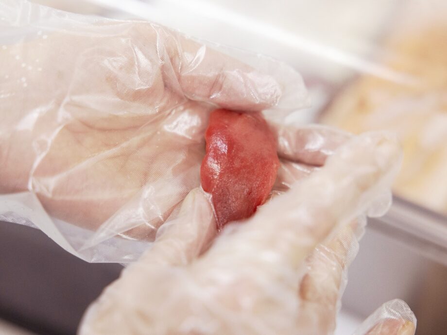「三崎市場には一日あたり300~400本ほど冷凍マグロが並びます。見るのは体の横に置かれた尻尾の部分。我々はその尻尾の断面を見て、脂の乗り、色味などから品質の良し悪しを見極めます」