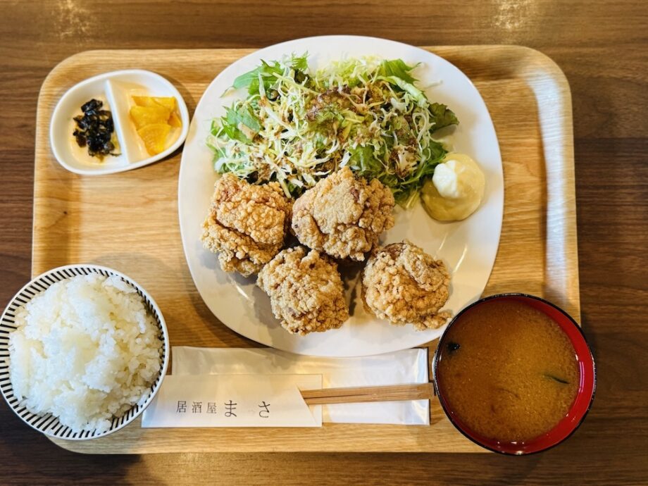 ランチメニューの唐揚げ定食も好評で、プラス100円(税込)で唐揚げを1つずつ(追加注文できるのも嬉しいポイント。